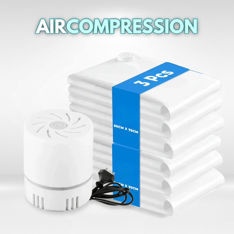 Con este pack de bolsas al vacío con bomba eléctrica, olvídate del desorden y gana hasta un 80% más de espacio en tus armarios y maletas.