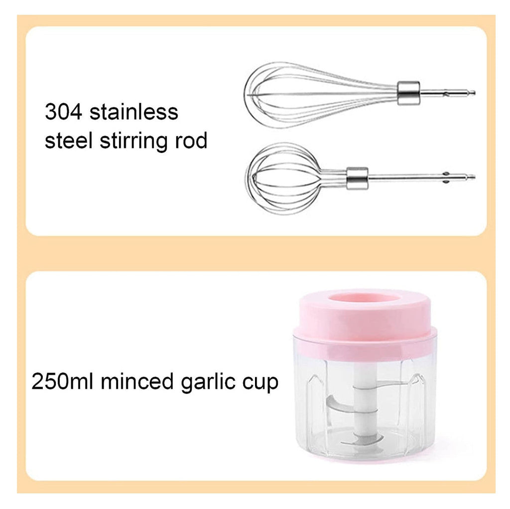 ✅ Batidora eléctrica ✅ Taza picadora (triple cuchilla) ✅ Cabezales para batir ✅ Cable USB para cargar