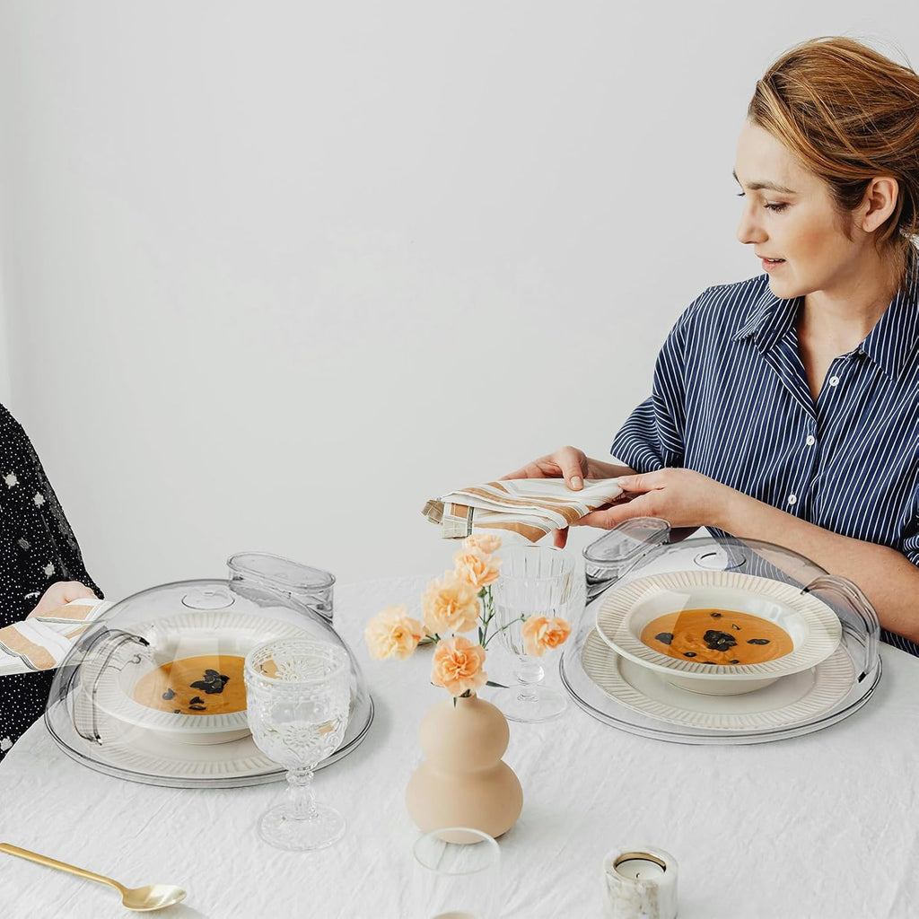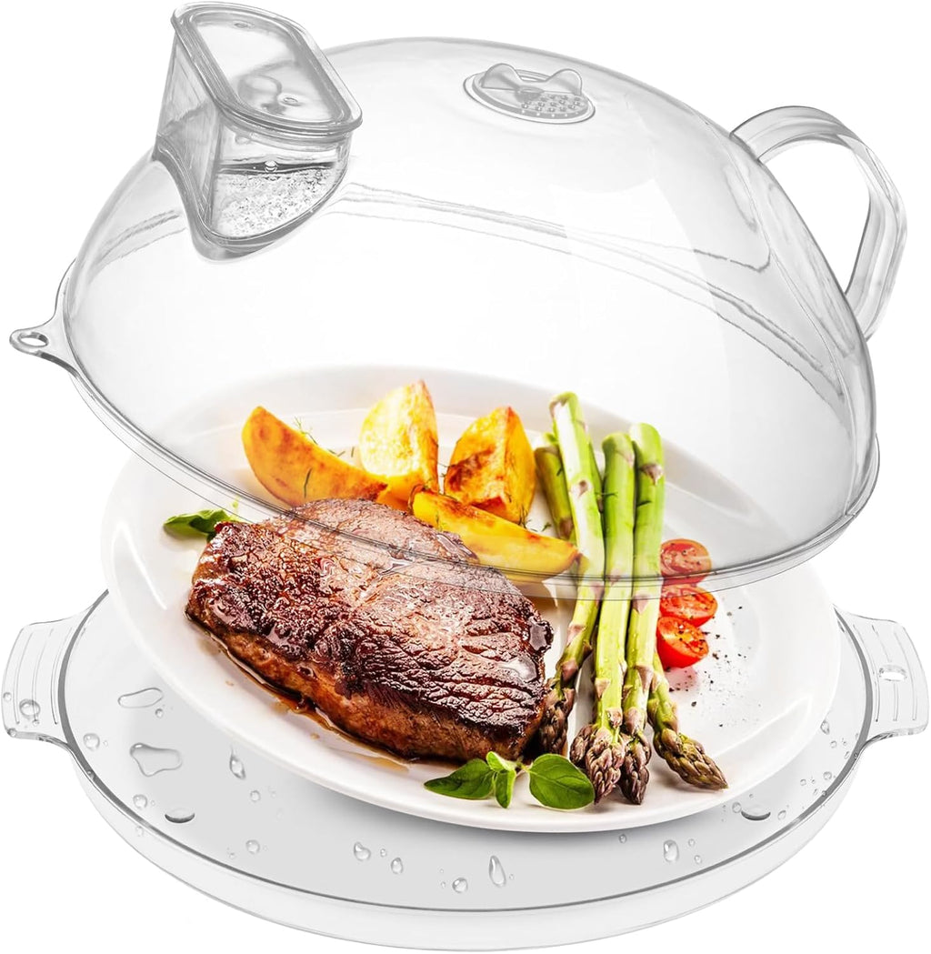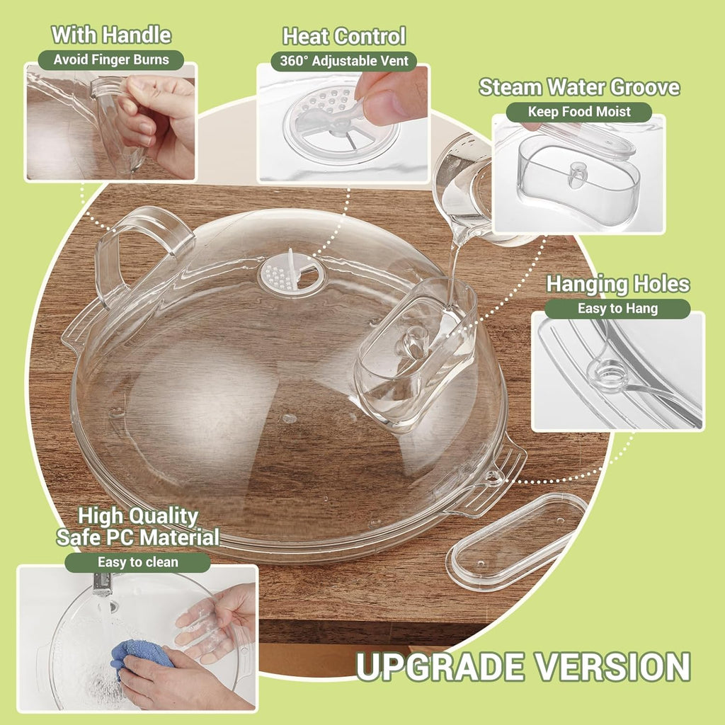 🎯 BENEFICIOS ADICIONALES: ✅ Diseño ligero y ergonómico con mango para fácil manejo. ✅ Compatible con cualquier microondas gracias a su tamaño universal. ✅ Doble uso: protege alimentos dentro y fuera del microondas.