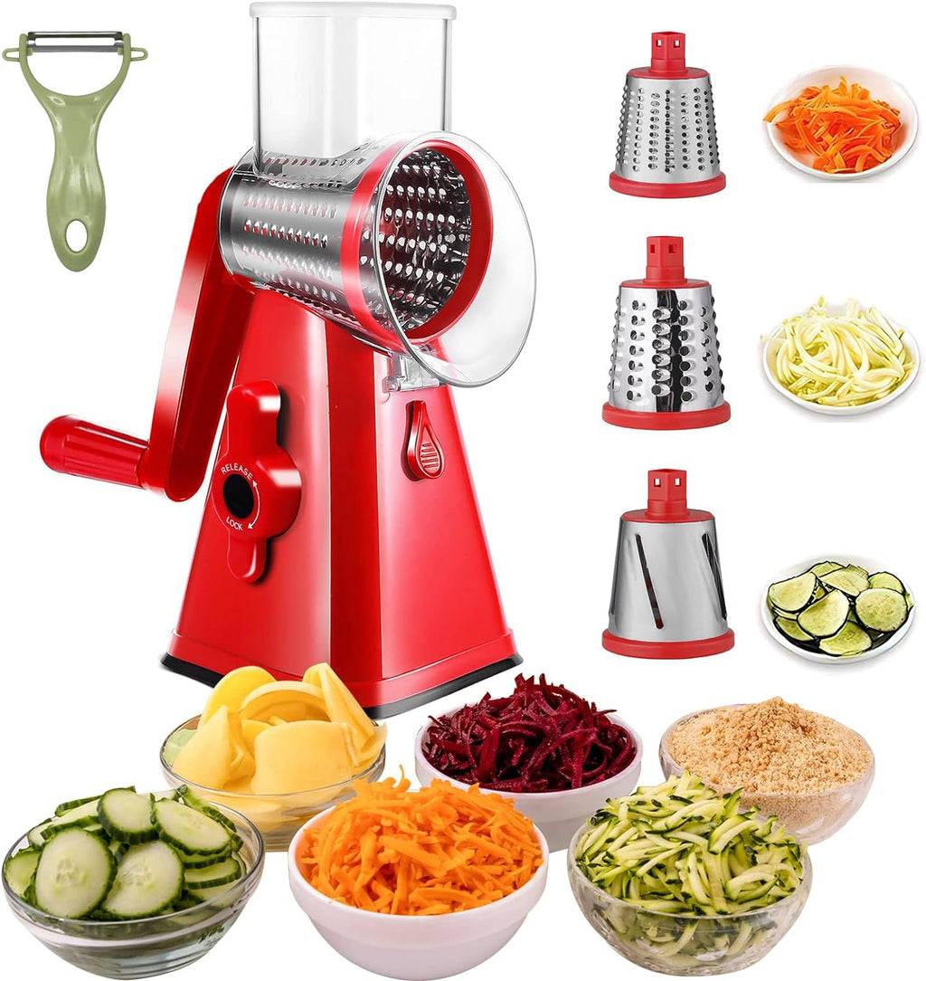 Nuestro rayador cuenta con cuchillas afiladas de calidad que hacen que cortar y rallar sea un juego de niños. Ahorra tiempo y esfuerzo en la cocina