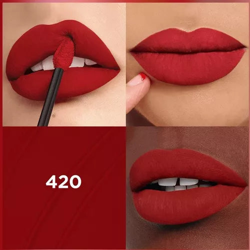 CON UNA GAMA DE COLORES ROJOS QUE SE MANTIENEN VIBRANTES DURANTE HORAS 🌈TE OFRECE LA LIBERTAD DE EXPRESARTE CON UNOS LABIOS IMPECABLES EN CUALQUIER SITUACIÓN. 💄✨