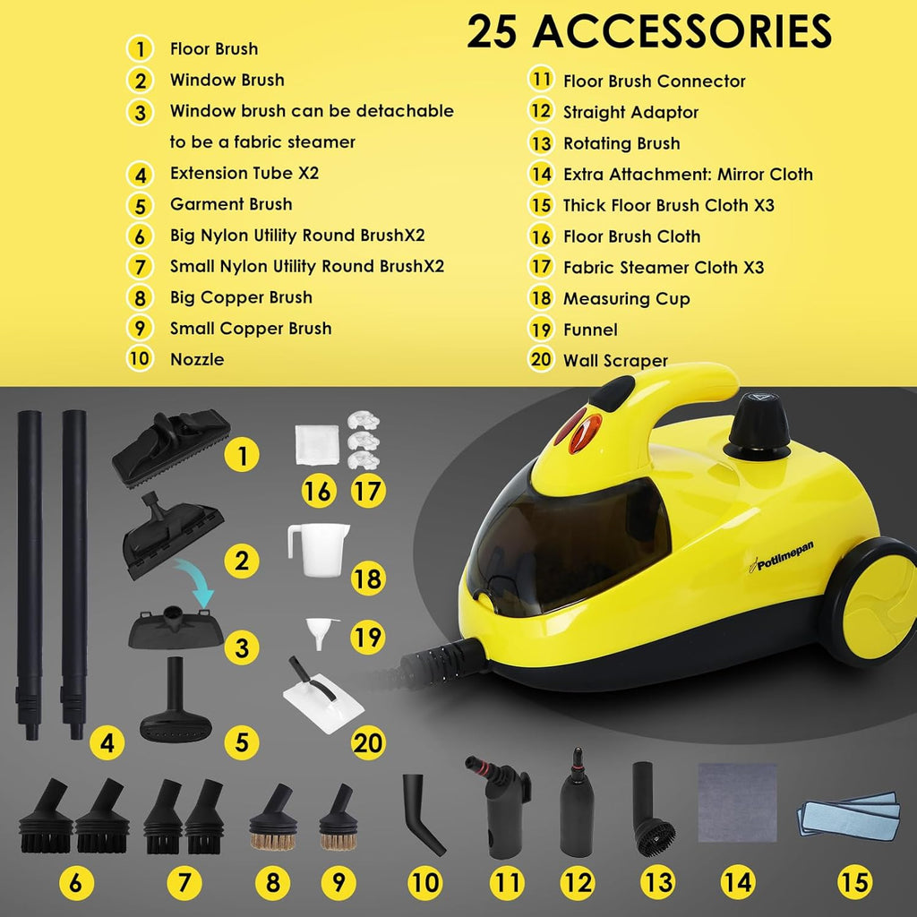 ✅ Potencia de 1500W – Genera vapor caliente de alta presión para una limpieza profunda. ✅ Tiempo de calentamiento rápido – Listo en pocos minutos para eliminar suciedad y gérmenes. ✅ Portátil y ligero – Fácil de manejar y transportar en toda la casa. ✅ Múltiples accesorios – Incluye boquillas, cepillos y adaptadores para diferentes superficies. ✅ Seguro y ecológico – Limpia sin químicos agresivos, ideal para hogares con niños y mascotas. ✅ Ideal para cualquier superficie – Perfecto para azulejos, alfombras, tapicería, cocinas, baños y más.