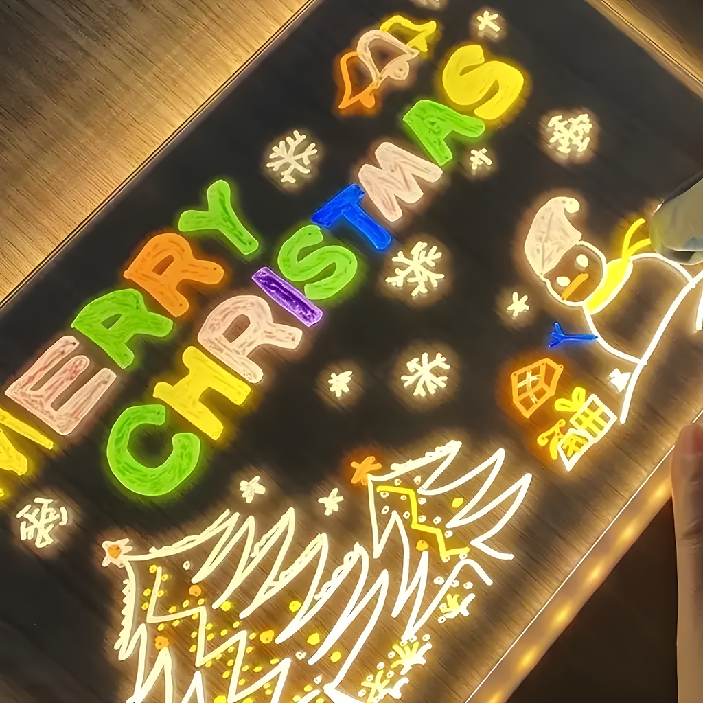 Esta pizarra cuenta con una iluminación LED que realza los colores brillantes de los bolígrafos incluidos, haciendo que tus mensajes y dibujos sean más atractivos y visibles