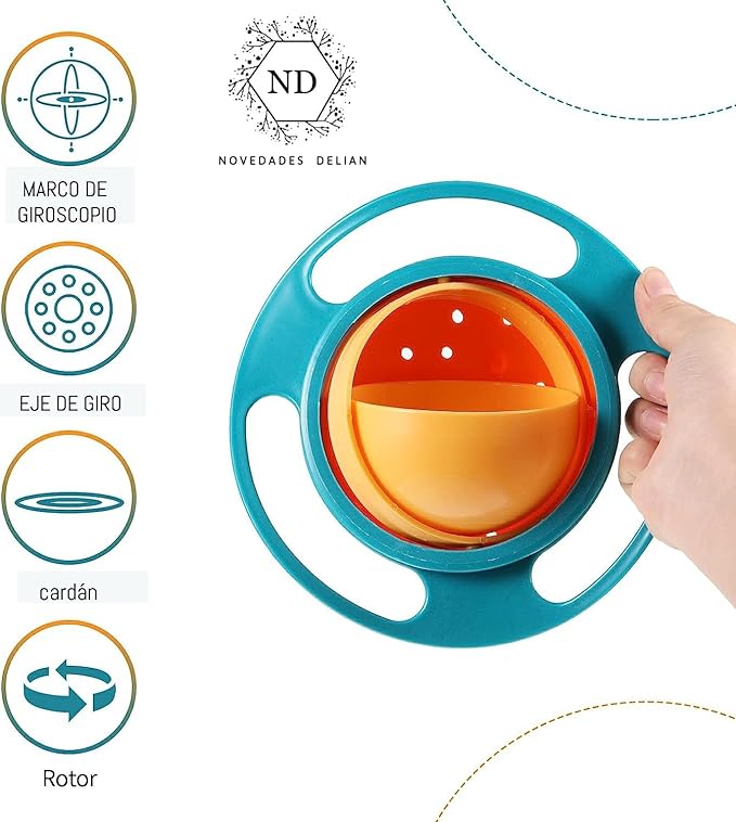 Con su innovador diseño de rotación de 360 grados, este plato permite que tu bebé alcance fácilmente la comida desde cualquier ángulo sin necesidad de mover el plato. ¡Es como magia!